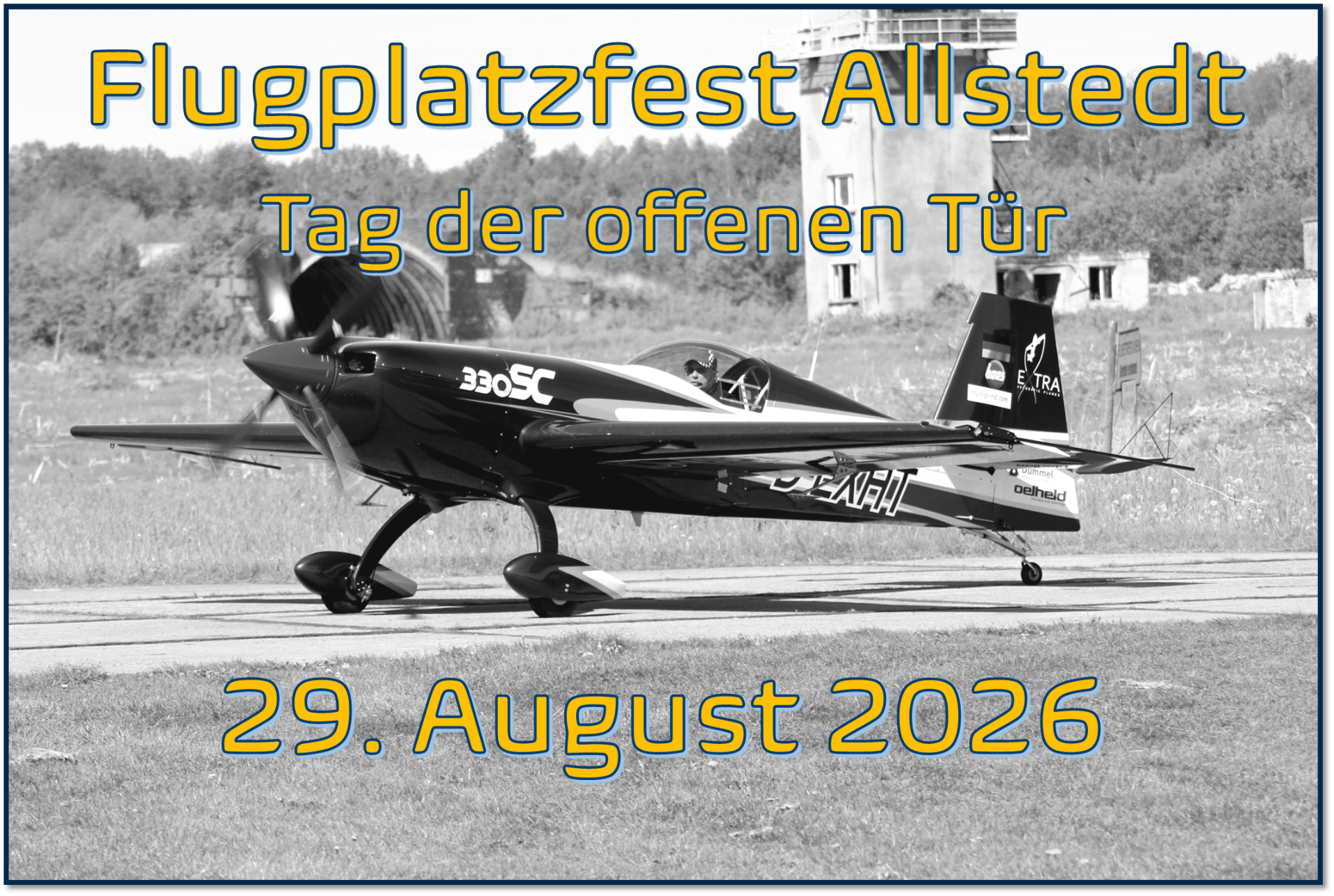 Weitere Termine die den Flugplatz Allstedt betreffen, werden hier bekanntgegeben. Für detailiertere (Vorab-)Informationen rufen Sie uns einfach unter 0176/61 71 66 86 oder 0173/40 23 52 7 an.